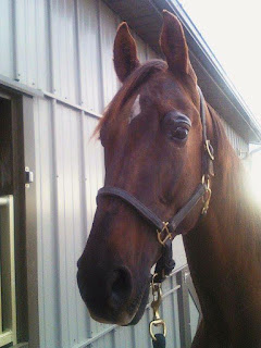 I moved home and the Nerd Herd migrated with me. One night in March, 2.5 months before her 2nd birthday I got a call from the owner of the barn where she was at that said she had cut her legs and it was bad. I dropped what I was doing and raced to the barn. She was down in the mud and wouldn't get up. She had been playing and stepped over the board placed against the barn (was a kind of quansett hut with curved metal roofing that wrapped around to the ground) and gotten her right feet wedged just right that when she pulled to step away, it sliced. We called the vet and he arrived but it was so muddy he wanted to take her back to the clinic to do xrays and examine her better.